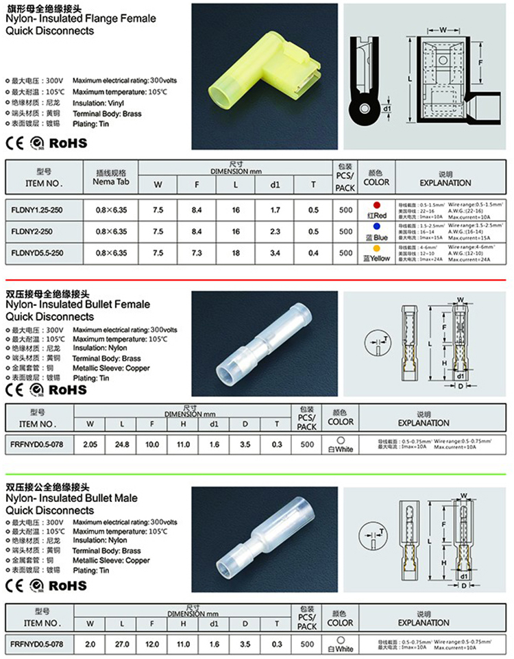 子彈形公、母全絕緣接頭(尼龍)
